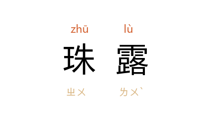 引南朝 齐 王融 《青青河畔草》诗:“珠露春华返,璿霜秋照晚。”元 吴师道 《晚霜曲》:“九天 青女 曳裙带,笑抛珠露成飞花。”明 刘基 《祝英台近》词:“翠烟收,珠露下,星汉共瀟洒。”许地山 《万物之母》:“这当然更要动她底心,所以那方从霭云被里钻出来的朝阳无力把她脸上和鼻端底珠露晒干了。”