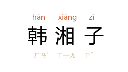 ⒈ 人名。唐朝韩愈的姪子。生性放荡不拘,不好读书,世传其学道成仙,为八仙之一。尝于初冬季节令牡丹开花数色,又尝令聚盆覆土,顷刻开花。见唐·段成式《酉阳杂俎·卷一九·广动植之四》。