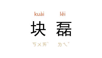 ⒈ 比喻人心中积存不平之气,抑郁不适。宋·刘弇〈莆田杂诗〉二〇首之一六:「赖足尊中物,时将块磊浇。」也作「磊块」、「垒块」。