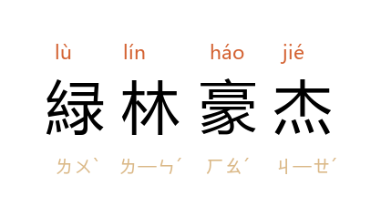 引清 李渔 《玉搔头·逼氛》:“我如今以诛讨二贼为名,有谁人道我的不是,又喜得有两个緑林豪杰率众来归,要助我力图大事。”中国近代史资料丛刊《辛亥革命·辛亥革命北方实录》:“盖振武社为 削嶂、云峰、兰廷、熙泰 等所创办,举凡 奉、吉、黑、热、察、绥 以及内、外 蒙古 均有分社,意在团结当地緑林豪杰使之尽力於革命也。”