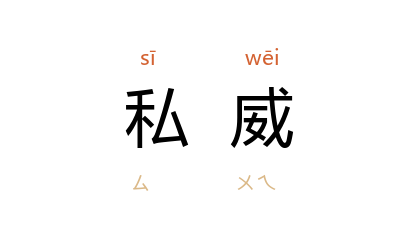 引《韩非子·用人》:“如此则上无私威之毒,而下无愚拙之诛。故上君明而少怒,下尽忠而少罪。”汉 桓宽 《盐铁论·禁耕》:“吴王 专山泽之饶,薄赋其民,賑赡穷小以成私威。私威积而逆节之心作。”