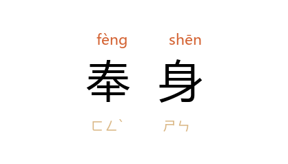 引宋 王禹偁 《官舍偶题》诗:“奉身无实事,困我为虚名。”明 无名氏 《运甓记·太真借饷》:“事若有济,则臣主同祚;万一不捷,亦当奉身以谢先帝。”