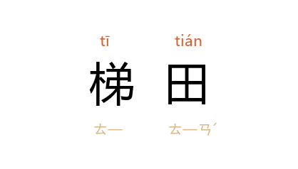 ⒈ 在山坡上开辟的农田,样子像楼梯,一级一级的,边缘筑有田埂,以防止水土流失。