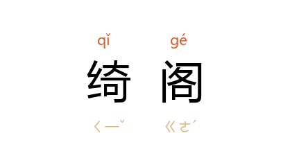 引晋 葛洪 《抱朴子·知止》:“仰登綺阁,俯映清渊。”《北史·常景传》:“夫如是,綺阁金门,可安其宅;锦衣玉食,可颐其形。”明 陈子龙 《月夜游剑池作》诗:“羣傖澒洞作风尘,綺阁雕栏愁杀人。”《花月痕》第四五回:“沉沉綺阁幌双重,频卜归期未有期。”