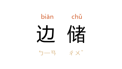 ⒈ 亦作“邉储”。指边防用的储备粮食或物资。