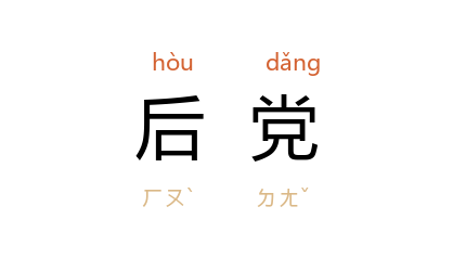 引晋 庾亮 《让中书令表》:“是以前后二 汉,咸以抑后党安,进婚族危。”范文澜 蔡美彪 等《中国通史》第三编第四章第一节:“达磨 赞普无子,王后 綝氏 立内侄 乞离胡 为赞普。大相 结都那 反对立异姓子,被后党杀死。”