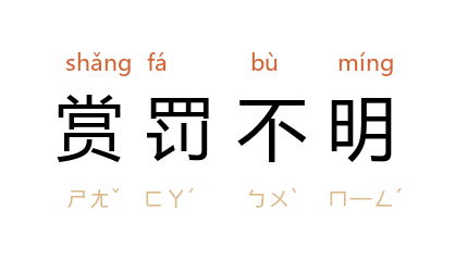 引三国蜀·诸葛亮《便宜十六策·赏罚》:「夫将专恃生杀之威,必生可杀,必杀可生,忿怒不详,赏罚不明,教令不常,以私为公,此国之五危也。」《精忠岳传·第五二回》:「他道我赏罚不明,因而怀恨,致有此举。」