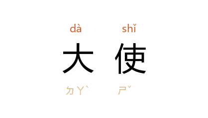 英语ambassador, envoy, CL:名[ming2],位[wei4]