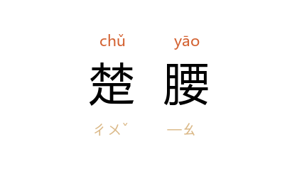⒈ 后因以“楚腰”泛称女子的细腰。