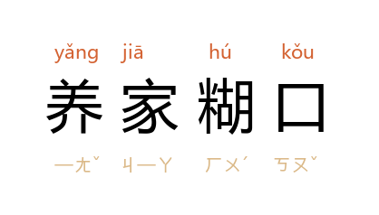 引姚雪垠 《李自成》第一卷第二四章:“父亲 李守忠 是一个庄稼人,为着养家糊口,每到农闲时候就自己做些瓦盆瓦罐放在土窑中烧熟,挑着走乡窜村叫卖。”南新宙 《黄浦江的激流》:“我高兴极了,从此我就和大人一样当了工人,等我挣了工钱,就可以帮助养家糊口啦!”