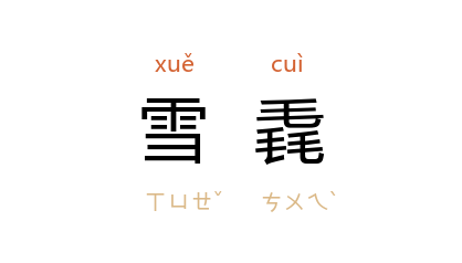 引唐 王建 《花褐裘》诗:“对织芭蕉雪毳新,长缝双袖窄裁身。”元 柳贯 《同杨仲礼和袁集贤上都诗》之十:“雪毳千家帐,冰瓢百眼泉。”明 田艺蘅 《白鹿赋》:“雪毳含辉,霜毫出浴。洁若凝冰,素如琢玉。”