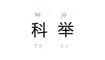 ⒈ 隋唐到清代用以考选官吏的制度。隋废九品中正制,改置进士等科;唐科目增至五十余,故称为「科举」。后宋用帖括,明清用八股试士,亦沿用科举之称。至清光绪三十一年(西元1905)始明令废止。