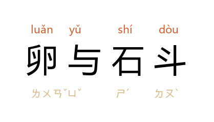 引汉 焦赣 《易林·艮之损》:“卵与石鬭,麋碎无疑。”汉 焦赣 《易林·复之豫》:“卵与石鬭,麋碎无处。”