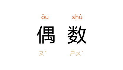 ⒈ 双数。即凡能以二除尽的数。如二、四、六等。相对于奇数而言。