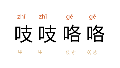 ⒈ 状声词:(1) 形容说话吞吐而细小的声音。(2) 形容笑声。或读为ㄗ ㄗ ㄍㄜˊ ㄍㄜˊ zī zī gé gé。