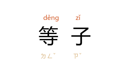⒉ 为确定某种物品的高下等级,按等级次第,选择该物品若干件,以为衡量的标准。这种作为衡量标准的物品称“等子”。