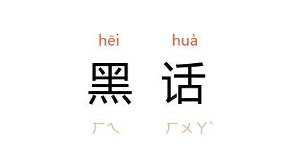 ⒈ 本指旧小说中,江湖人物的暗语、暗号。后流行于帮会或某一特殊行业中,非局外人所能了解的语言,称为「黑话」。