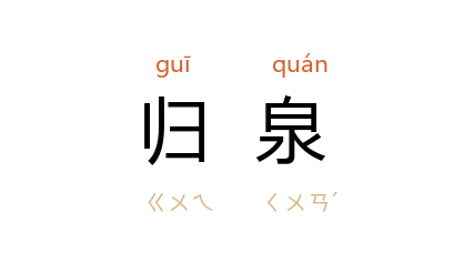 引唐 刘禹锡 《代慰王太尉薨表》:“方膺作翰之寄,遽迫归泉之期。”明 高明 《琵琶记·风木馀恨》:“欲听鸡声来问寝,忽惊蚁梦先归泉。”《闲情偶寄·演习·变调》附《<琵琶记·寻夫>改本》:“因来灶边,窥奴私嚥,一声儿哭倒便归泉。”
