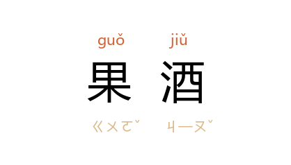 ⒈ 用水果或某些野生果实酿制的酒。一般酒精含量较少,具有水果香味。