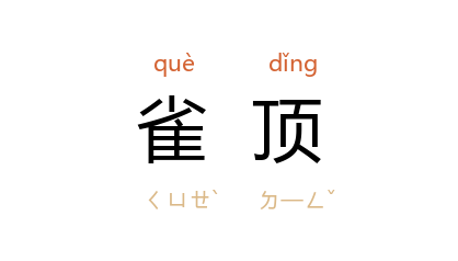 ⒈ 清代士子冠顶饰雀形,称为「雀顶」。举人的雀顶是镂花银座,上衔金雀。生员则上衔银雀。
