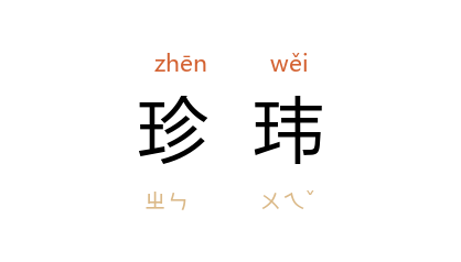 引汉 应瑒 《车渠椀赋》:“惟兹椀之珍瑋,诞灵岳而奇生。”《隶释·汉郎中郑固碑》:“邦后珎瑋,以为储举。”《宋书·竟陵王诞传》:“昔内难甫寧,珍瑋散佚。”