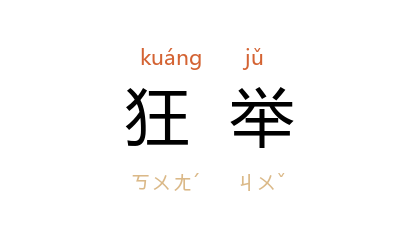 引《墨子·经说下》:“若举‘牛有角’,‘马无角’,以是为‘类之不同也’,是狂举也。”孙诒让 间诂:“《公孙龙子》亦有正举狂举之文,以意求之,盖以举之当者为正,不当者为狂。”《公孙龙子·通变论》:“与马以鷄寧马。材不材,其无以类,审矣!举是乱名,是谓狂举。”