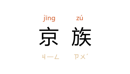 ⒈ 我国少数民族之一。主要分布在广西沿海之澫尾、巫头、山心三个半岛上。人口约一万八千。经济以渔业为主,兼营农业。社会组织以「翁村」为首。语言使用以京语为主,兼通汉语、粤方言。京语未定系族,有人认为属越南语。信仰以道教为主。