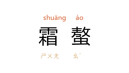 引唐 皮日休 《病中有人惠海蟹转寄鲁望》诗:“病中无用霜螯处,寄与夫君左手持。”宋 苏轼 《中山松醪赋》:“酌以癭藤之纹樽,荐以石蟹之霜螯。”明 徐渭 《钱王孙饷蟹》诗:“鯫生用字换霜螯,待詔将书易雪糕。”清 陈维崧 《霜花腴·蟹》词:“偏值新晴,且谋小饮,霜螯最是宜。”