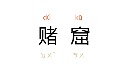 引叶圣陶 《穷愁》:“赌窟既破,全市喧传,羣来聚视博徒何如人。”章丽娅 李小兵 《<赌海沉浮>序》:“巴登城 是个大赌窟,这里聚集了许多国家的赌客。”
