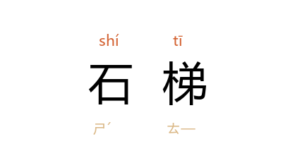 引唐 薛能 《凌云寺》诗:“像阁与山齐,何人致石梯?”唐 温庭筠 《清凉寺》诗:“松飘晚吹摐金鐸,竹荫寒苔上石梯。”《西游补》第十三回:“两个竟像相知,一头笑,一头走,走过一张石梯,忽见临水洞天。”