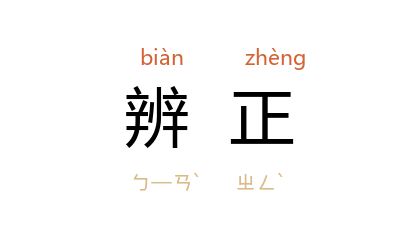 引晋 干宝 《搜神记》卷十六:“﹝ 阮瞻 ﹞素执无鬼论,物莫能难。每自谓此理足以辨正幽明。”南朝 梁 刘勰 《文心雕龙·论说》:“原夫论之为体,所以辨正然否。”胡适 《<红楼梦>考证》:“《红楼梦索引》一书,有了《董小宛考》的辨正,我本可以不再批评他了。”