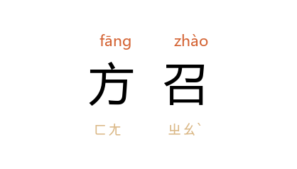 引《宋书·王镇恶传》:“﹝ 镇恶 ﹞实扞城所寄,国之 方 邵 也。”隋 卢思道 《劳生论》:“方 邵 重臣,外扬武节。”唐 李华 《卢中郎斋居记》:“庙堂有风力之臣,征镇皆 方 召 之老。”《旧唐书·太宗纪上》:“周宣 驱驰 方 召,亦能制胜 太原。”