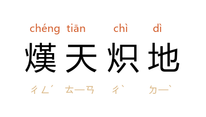 引《西游记·第四一回》:「只见那红焰焰大火烧空,把一座火云洞被那烟火迷漫,真个是熯天炽地。」