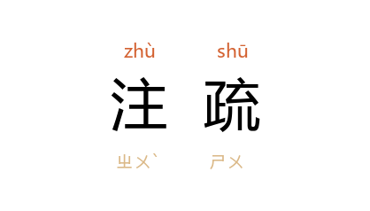 ⒈ 注和疏的并称。注,对经书字句的注解,又称传、笺、解、章句等;疏,对注的注解,又称义疏、正义、疏义等。注、疏内容关乎经籍中文字正假、语词意义、音读正讹、语法修辞,以及名物、典制、史实等。 宋 人将十三经之 汉 注 唐 疏合刊,“注疏”之称始流行。