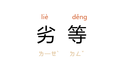 例如:「这家公司的产品,经过重新研究及改良后,已经由劣等转为优等。」