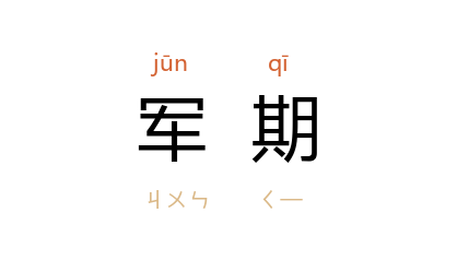 引《晋书·蔡谟传》:“东瀛公 腾 为车骑将军,镇 河 北,以 克 为从事中郎,知必不就,以军期致之。”《资治通鉴·后汉隐帝乾祐三年》:“辛丑,敕:‘防御、团练使,自非军期,无得专奏事,皆先申观察使斟酌以闻。’”宋 陆游 《老学庵笔记》卷二:“而北取 燕 蓟,调发非常,动以军期为言。”