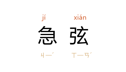 引《艺文类聚》卷四四引 汉 侯瑾 《筝赋》:“急絃促柱,变调改曲。”晋 陆机 《猛虎行》:“急絃无懦响,亮节难为音。”南朝 宋 谢灵运 《拟魏太子邺中集诗·魏太子》:“急絃动飞听,清歌拂梁尘。”
