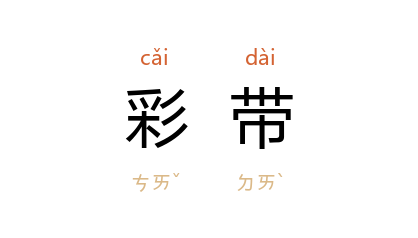 ⒈ 丝绸带子或皱褶纸带子。有各种不同的颜色,多用来装饰。