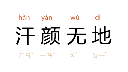 引《辛亥革命前十年间时论选集·<大同日报>缘起》:“不独他人言之惭愧,即自己言之,亦觉汗颜无地也。”邹韬奋 《经历》五六:“中国 人在那里发表抗敌救国的言论倒比 上海 自由得多。这在我们做 中国 人的说来虽觉汗颜无地,但却是事实。”