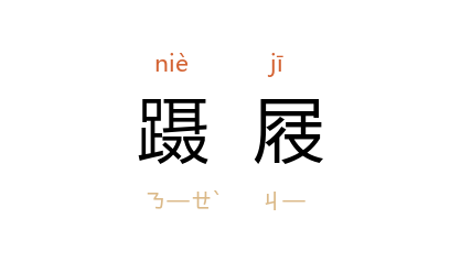 引《百喻经·毗舍闍鬼喻》:“此人即抱篋捉杖躡屐而飞。”唐 范摅 《云溪友议》卷五:“端端 得此诗,忧心如病,使院饮回,遥见女子躡屐而行,於道傍再拜,战惕曰:‘ 端端 祗候 三郎 六郎,伏望哀之。’”清 唐孙华 《寿周砾圃七十》诗:“山间躡屐却篮舆,花下衔盃倾酒瓮。”