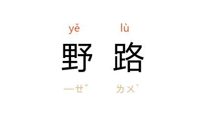 ⒉ 邪道,非正统的行径。参见“野路诗”。