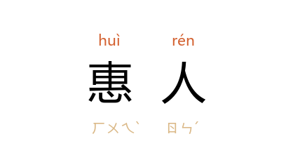 引《论语·宪问》:“或问 子产,子曰:‘惠人也。’”汉 王充 《论衡·明雩》:“或賫酒食,请於惠人之前,未出其泣,惠人终不为之陨涕。”