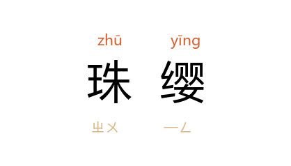 ⒈ 串珠的缨络,常作冠纽,头饰。