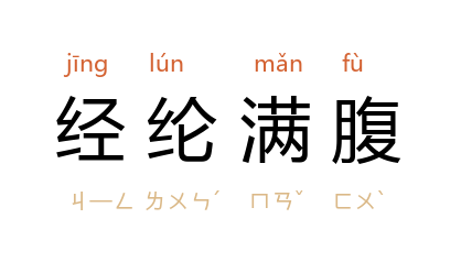 ⒈ 经纶,整理清楚的蚕丝,引申为人的学识、谋略。经纶满腹形容人才识丰富。也作「满腹经纶」。