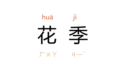 ⒈ 植物开花的季节。有些以花卉取胜的风景区,每年将百花盛开时期特别加以规划,加强宣传以招徕游客。