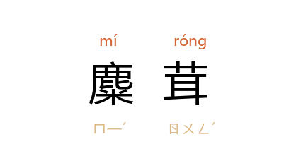 ⒈  麋角初生时,细短肿起的毛茸。与鹿茸相似。