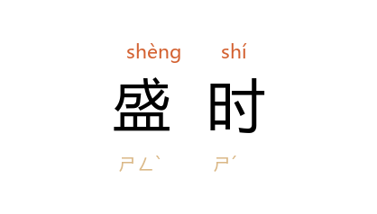 引《史记·刘敬叔孙通列传》:“及 周 之盛时,天下和洽,四夷乡风。”汉 朱浮 《为幽州牧与彭宠书》:“方今天下适定,海内愿安,无贤不肖皆乐立名於世。而 伯通 独中风狂走,自捐盛时。”宋 梅尧臣 《题老人泉寄苏明允》诗:“去为 仲尼 嘆,出为盛时祥。”明 陈子龙 《对酒》诗:“对酒歌盛时,天下方大治。”