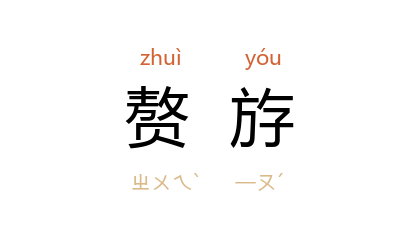引《新唐书·郭子仪传赞》:“当是时,天子西走, 唐 胙若赘斿,而能辅太子,再造王室。”《新唐书·奸臣传下·崔昭纬》:“方是时,帝室微,人主若赘斿然。”宋 洪适 《贺诛完颜亮表》:“赘斿于昔者,胡扛鼎以狺然。”