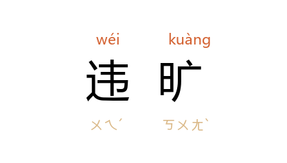 引宋 曾巩 《代皇子免延安郡王第一表》:“施于为己,可以持循;必也当官,覬无违旷。”明 张居正 《再乞守制疏》:“然及其未殯,凭棺一慟,身负簣土,加於邱壠之上,犹得少逭其违旷之咎,以慰冥漠之魂。”清 潘陆 《七夕》诗:“而我怀佳人,万里空相望。违旷逾一纪,大义迫中肠。”