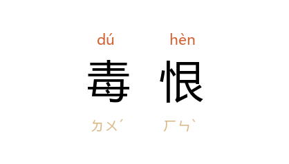 引《史记·日者列传》:“贾谊 为 梁怀王 傅,王堕马薨, 谊 不食,毒恨而死。”三国 魏 曹操 《请追增郭嘉封邑表》:“上为陛下悼惜良臣,下自毒恨丧失奇佐。”晋 葛洪 《抱朴子·论仙》:“众烦攻其膏肓,人鬼齐其毒恨。”臧克家 《运河》诗:“毒恨的眼泪,两地的哀号,终于掀起了万里波涛。”
